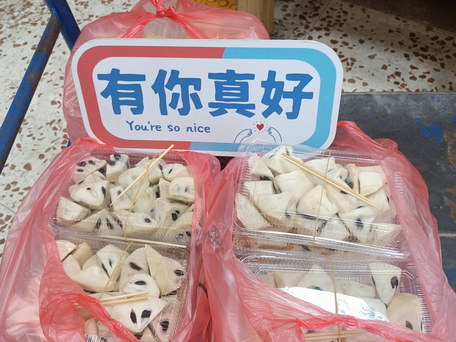 2024年4月12日  「鈴!鈴!鈴!」一通來自太魯閣牌樓前阿妹水果攤的電話,詢問可否送鳳梨釋迦過來給院生食用,還強調是新鮮的。約莫 30分鐘後,一輛藍色的小發財車緩緩的停在教養院的門口,一對白髮的老夫妻,一人一首共抬著一籃塑膠箱子,來來回回跑了3趟,湊近一看,滿滿都是已削好去皮的鳳梨釋迦,雪白的果肉,潤澤亮眼,令人垂涎三尺…。