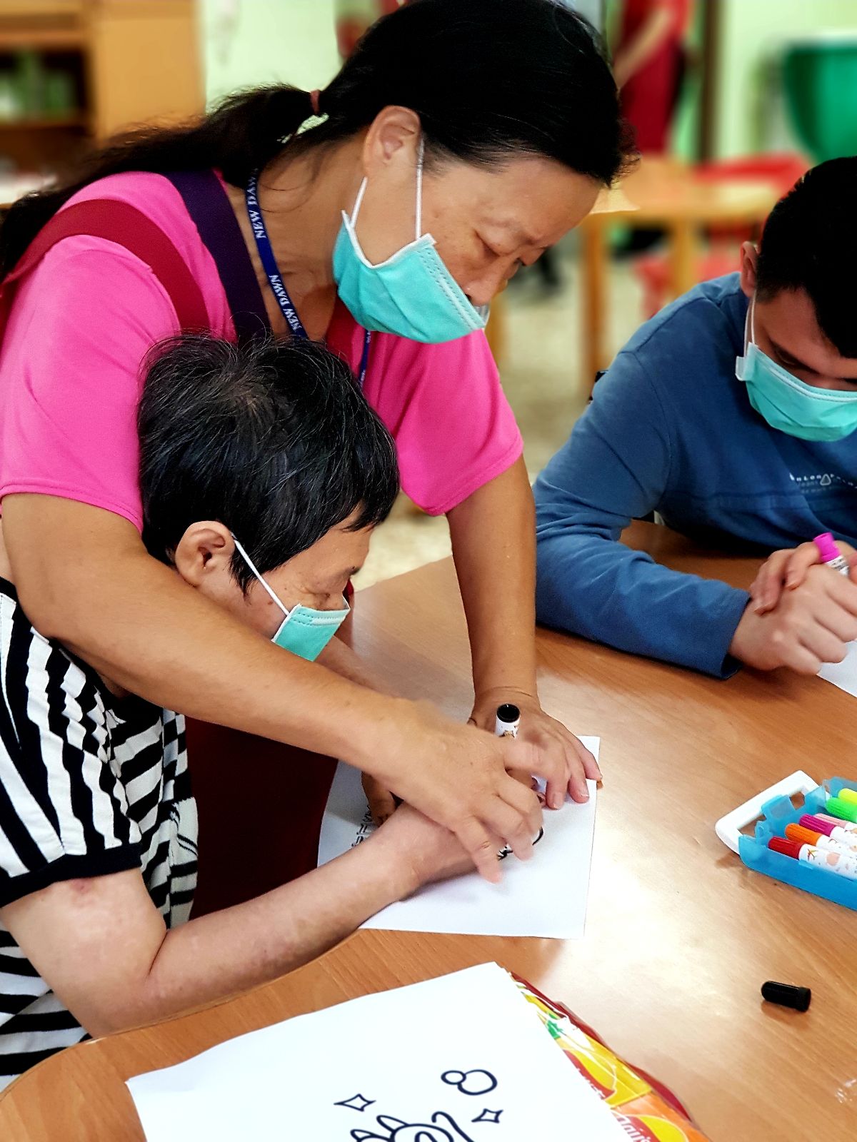 若是搬運的姿勢或力道不對,有可能會造成職業傷害,因此2016至2018年取得零抬舉(no lift policy)認證,增購及加強院內使用輔具(移位機等),並持續在日常提醒及遵循正確的照顧方法,保護自己更是保護服務使用者。除此之外,中高齡專區以24小時生活照顧為主的型態,大大增加了工作人員的責任與壓力,而服務使用者發生嚴重情緒行為時,也得面臨維護自身與其他服務對象人身安全的考驗。