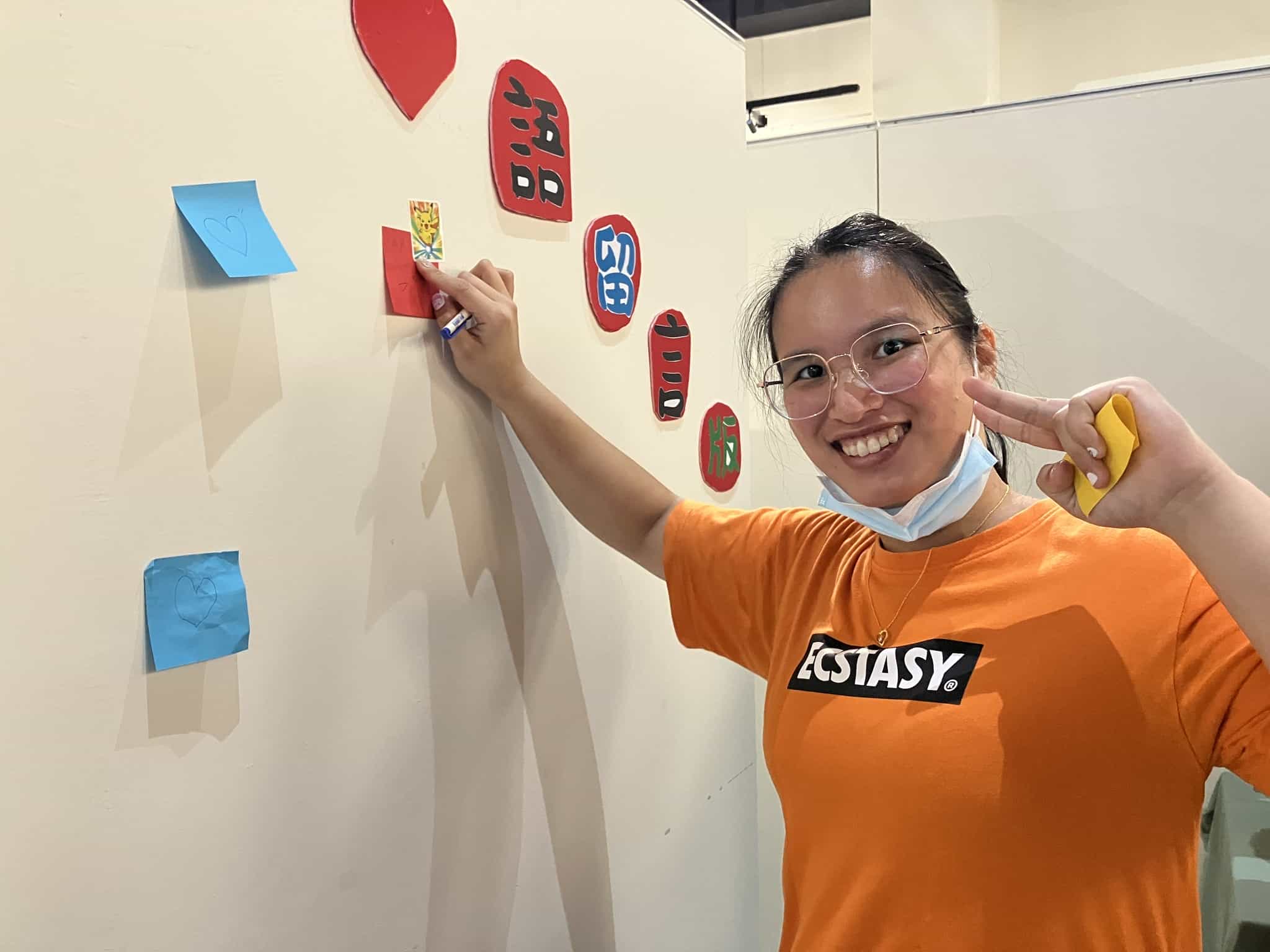 開幕現場氣氛熱烈,學員們興奮地與自己的作品合照,東華大學的學生們也紛紛前來觀賞,和學員深入交流,欣賞融會學員們。許多學員在觀眾面前展現自信,不僅能清楚介紹自己的畫作,更能積極地與周遭互動,表現出少見的開朗與從容,更能從被動化為主動和人們溝通。