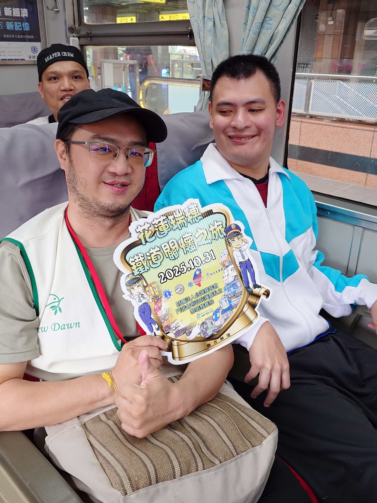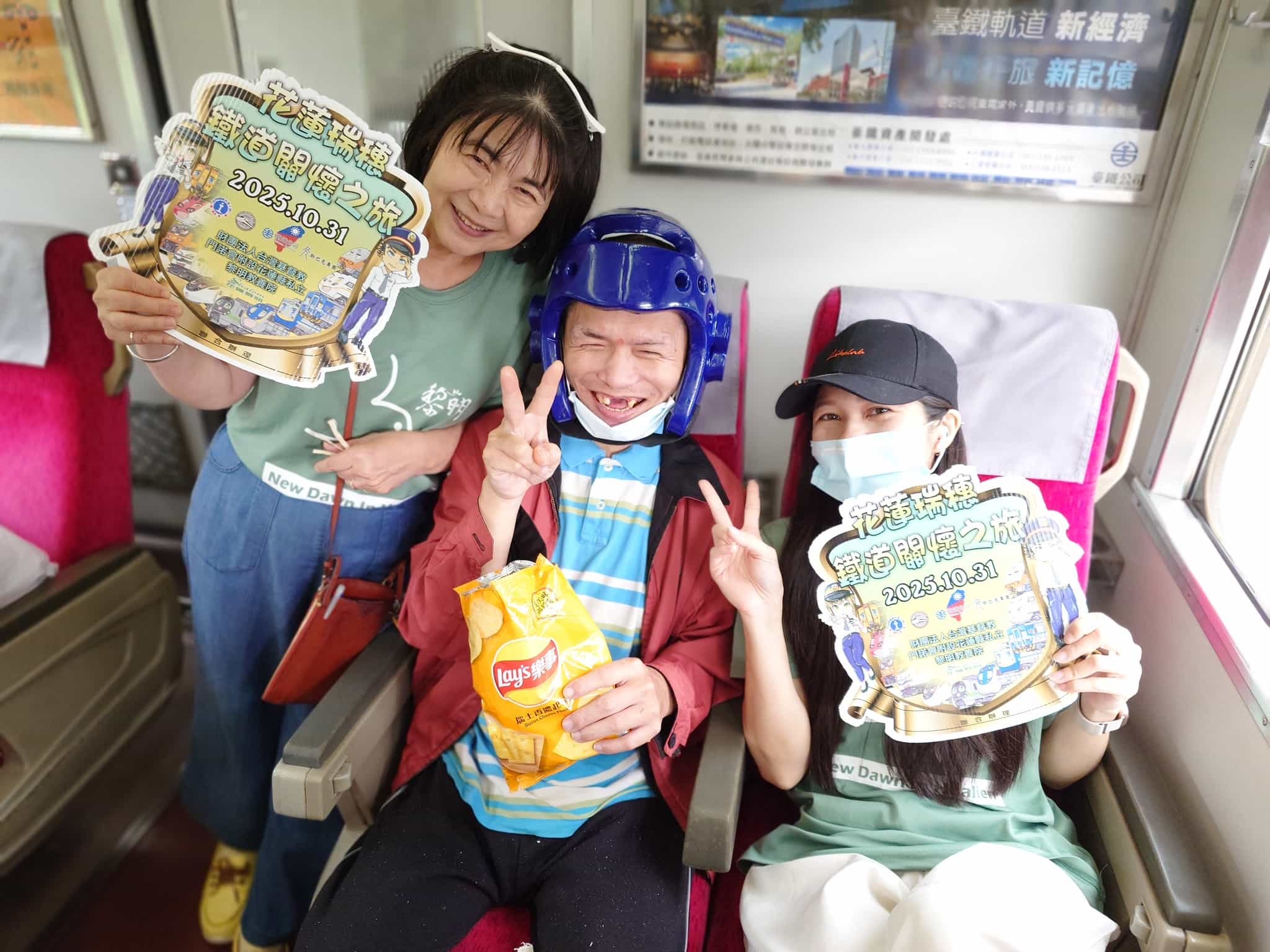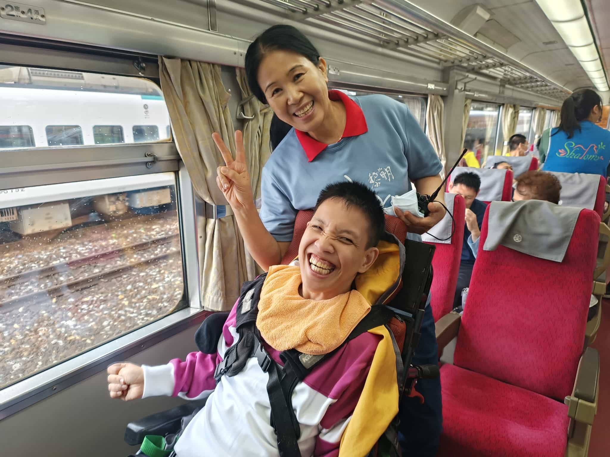 今年服務使用者們在家班會裡票選出的親子活動,是搭火車。剛好,服務使用者小銘的父親吳先生是台鐵駕駛員,透過他的聯繫、牽線,台灣鐵路公司特意安排志工和專門加開的自強號列車,讓大孩子們能在搖晃的節奏裡,找到久違又單純的快樂。