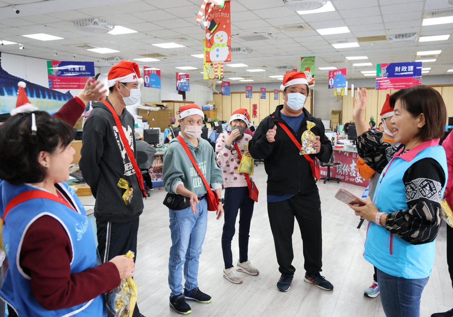 活動現場,黎明教養院的孩子們熱情向游鄉長與洽公民眾打招呼,大聲送上「聖誕節快樂」祝福,並以活潑唱跳表演傳遞歡樂能量,讓前來洽公的鄉親與公所同仁都深受感動,紛紛跟著節奏拍手應和,場面溫馨感人,充分展現聖誕節「分享與愛」的核心精神。